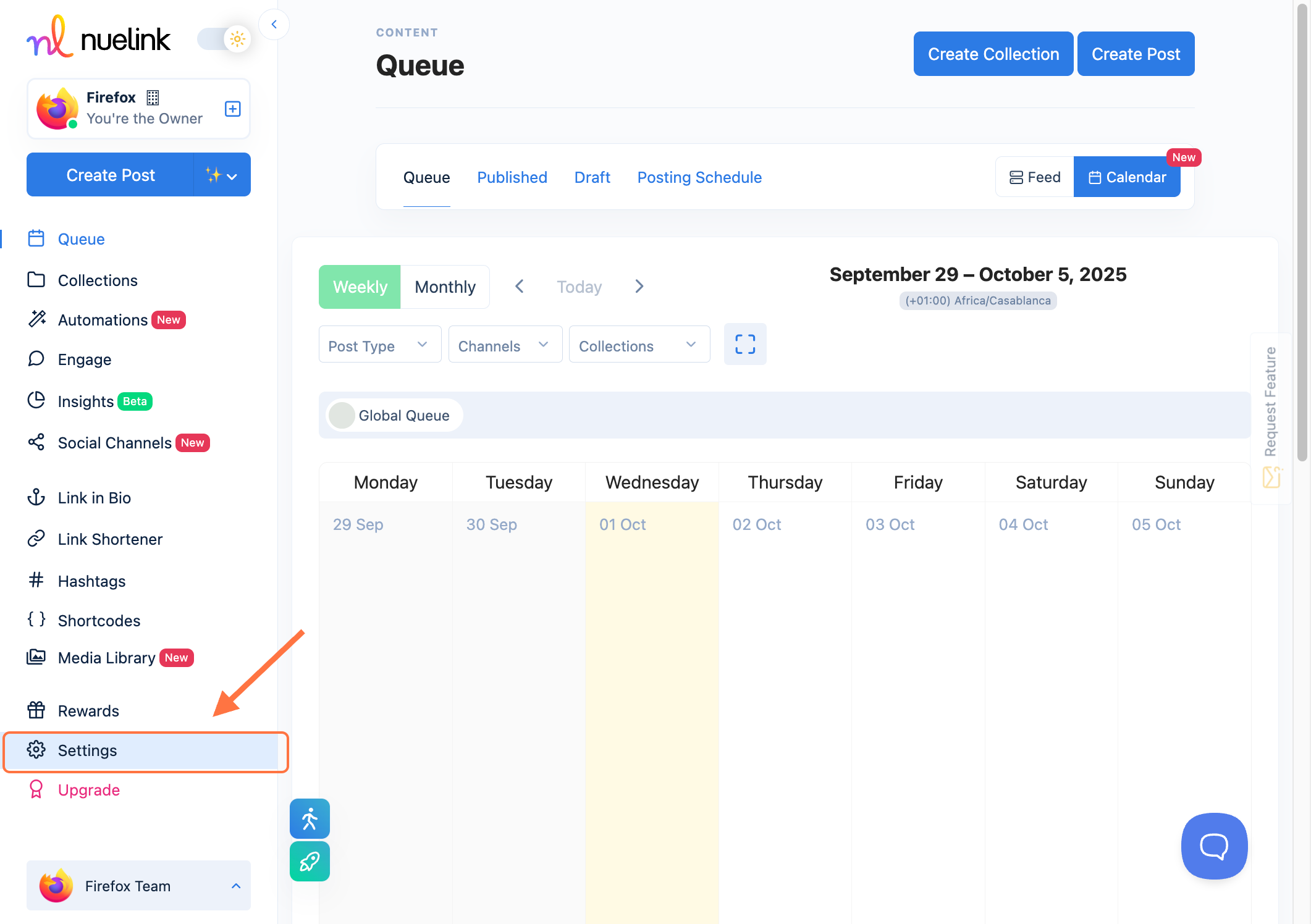 - Click on Settings on the navbar.