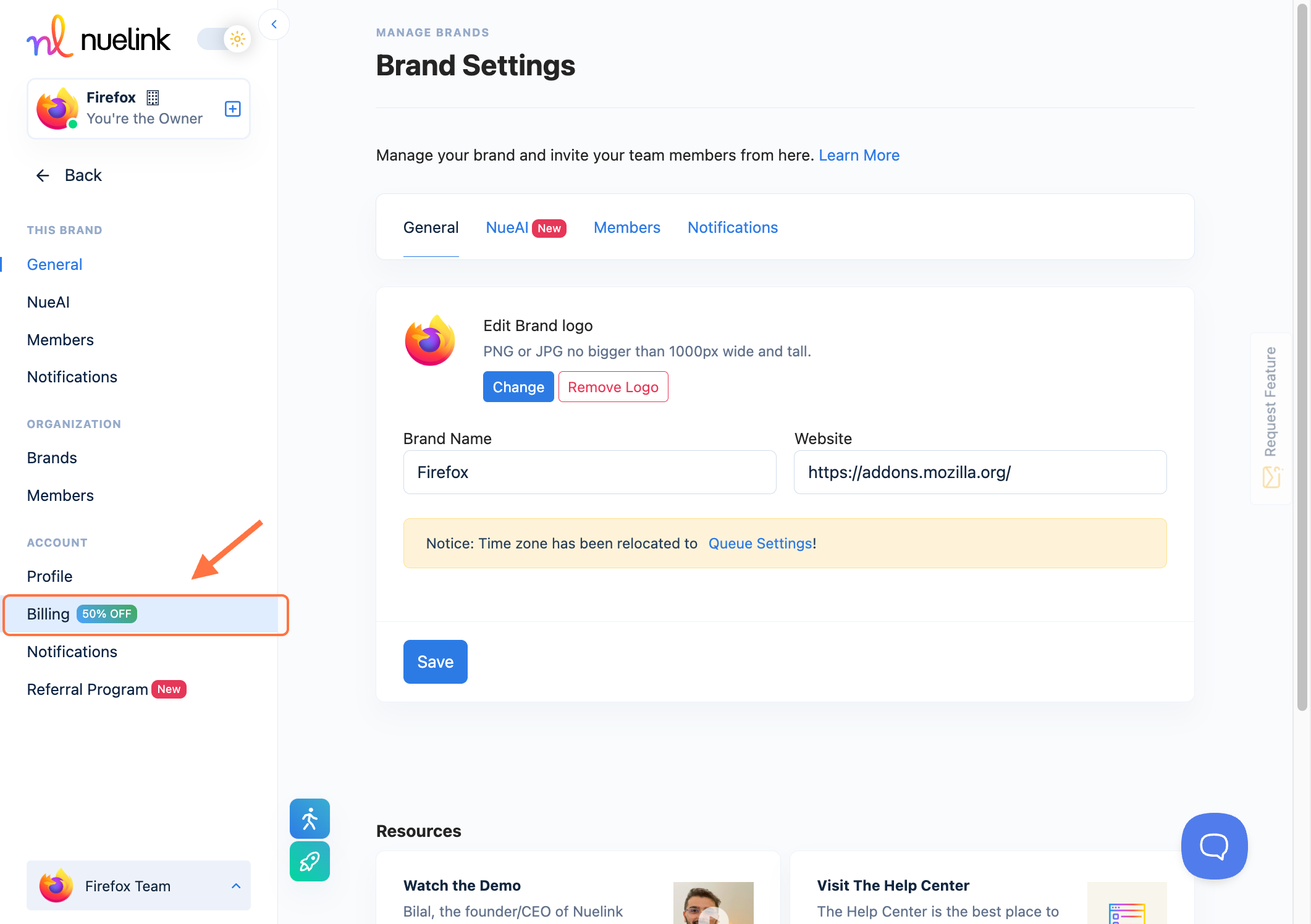 - Click on Billing.