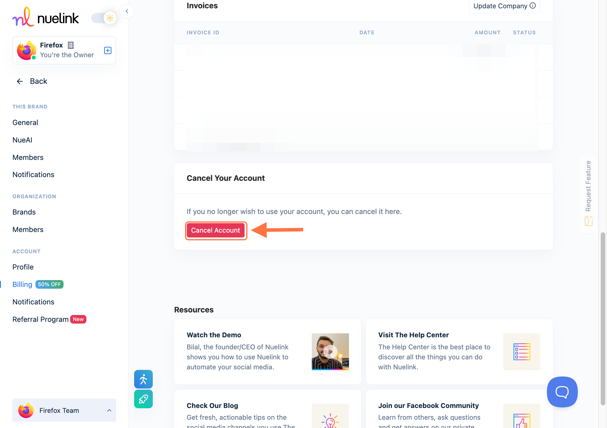 I don’t see the “Cancel your account” button. What should I do?