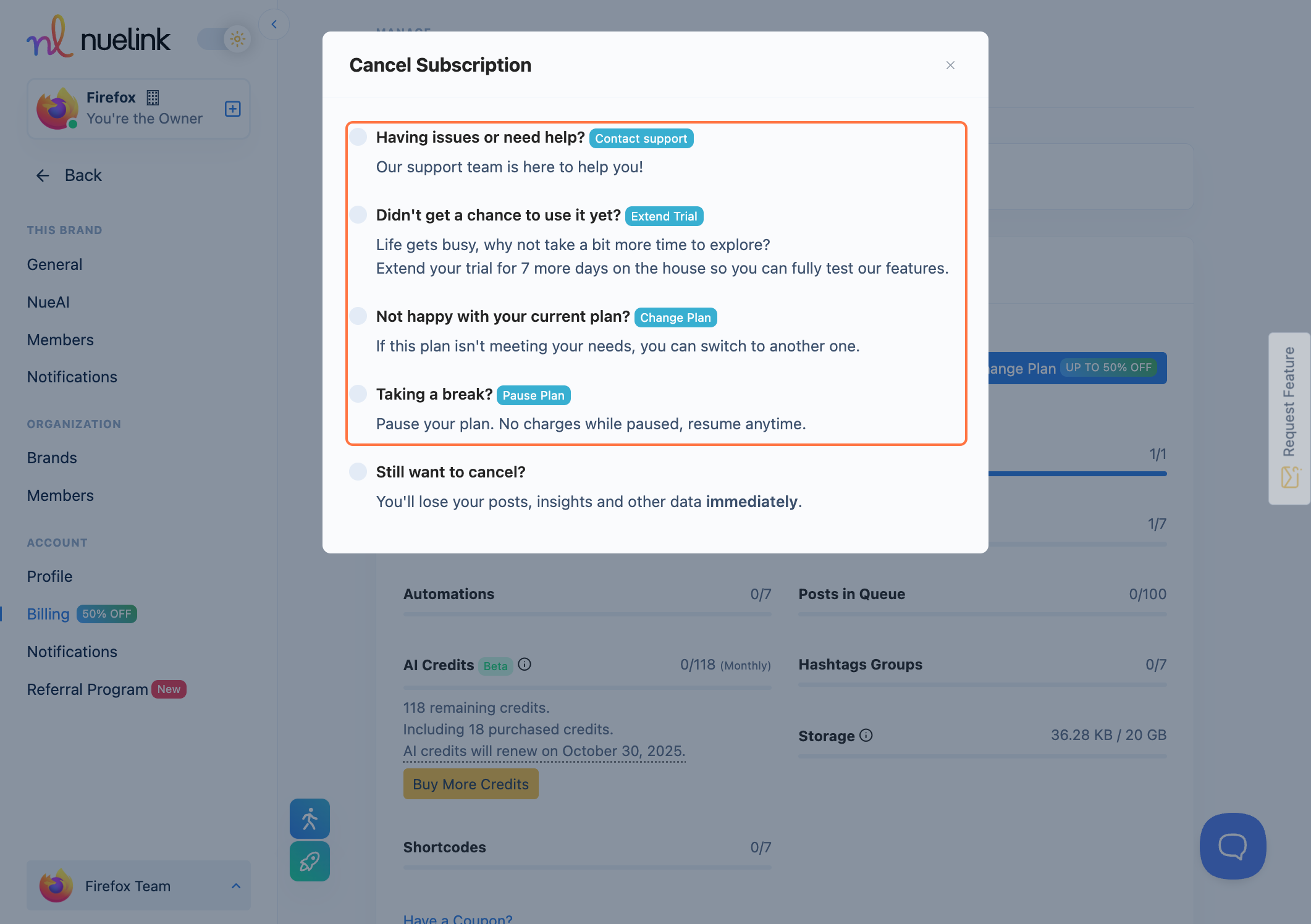 Extend Trial: If you got busy and didn't get a chance to try Nuelink before your trial ends, you can get a second chance.