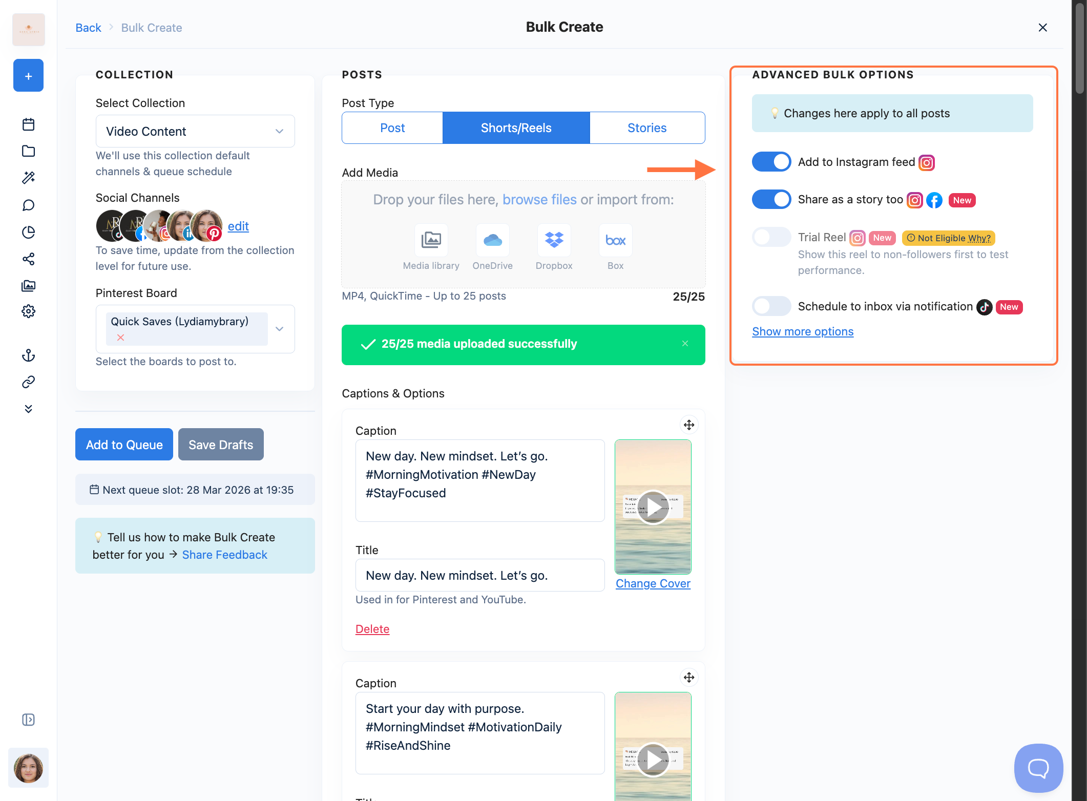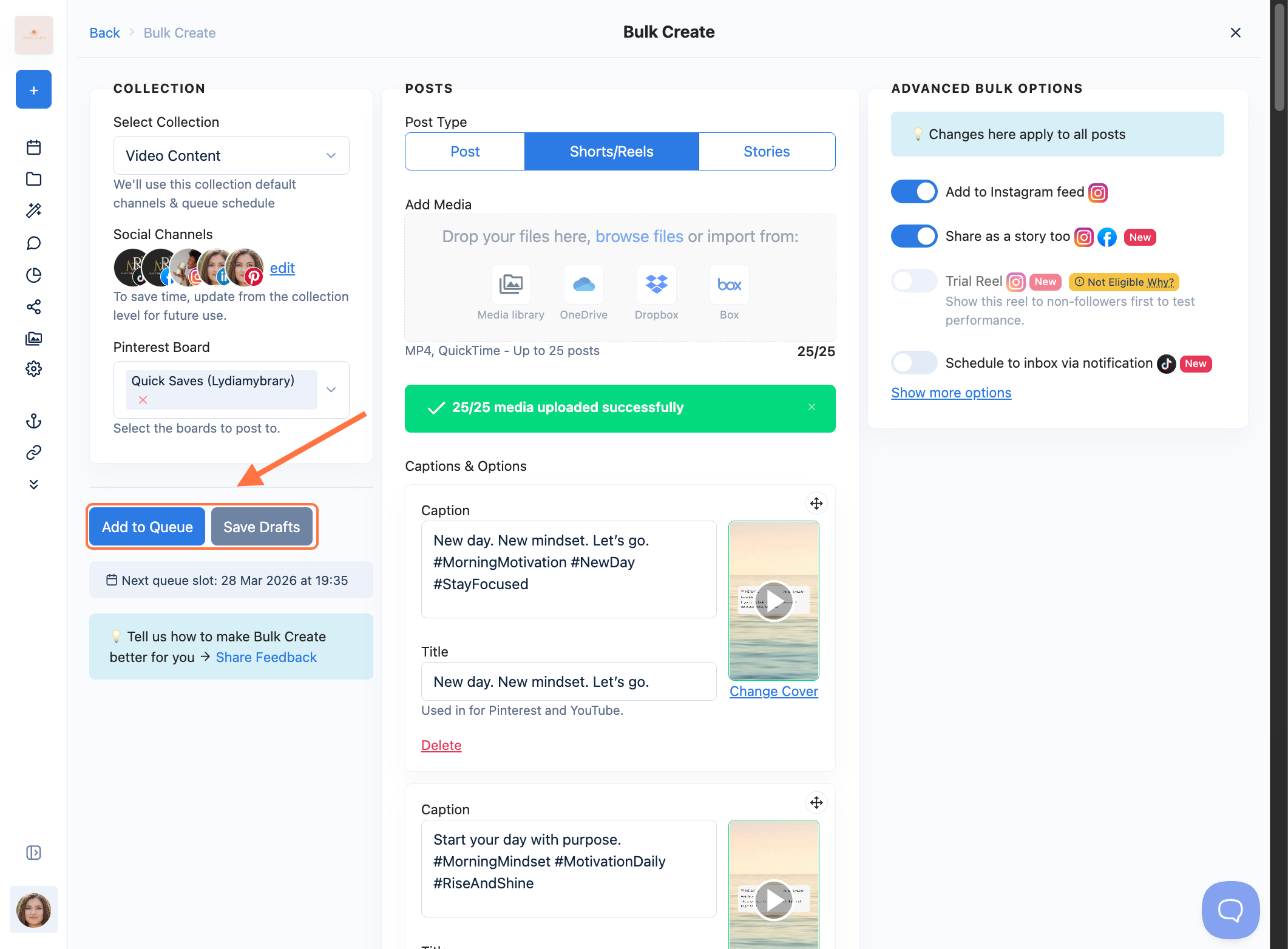 How to Bulk Create Posts, Shorts, and Stories with Nuelink.
