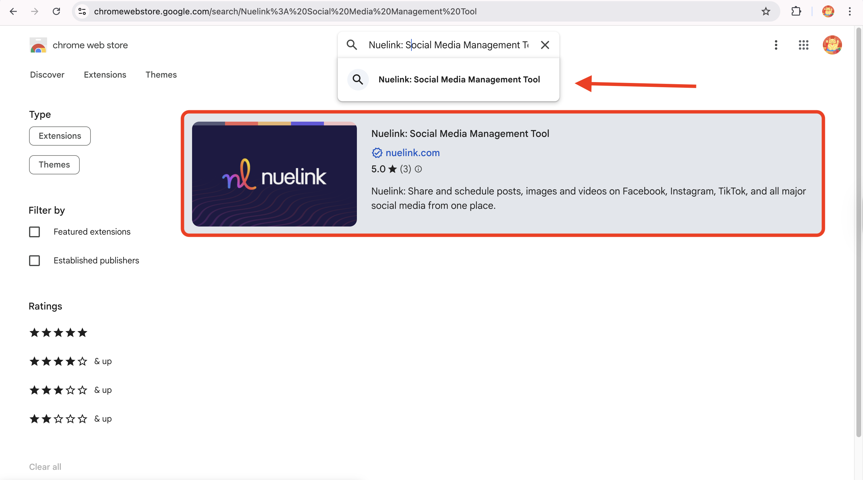 - To get the Nuelink Chrome extension, first go to the Chrome Web Store extensions: