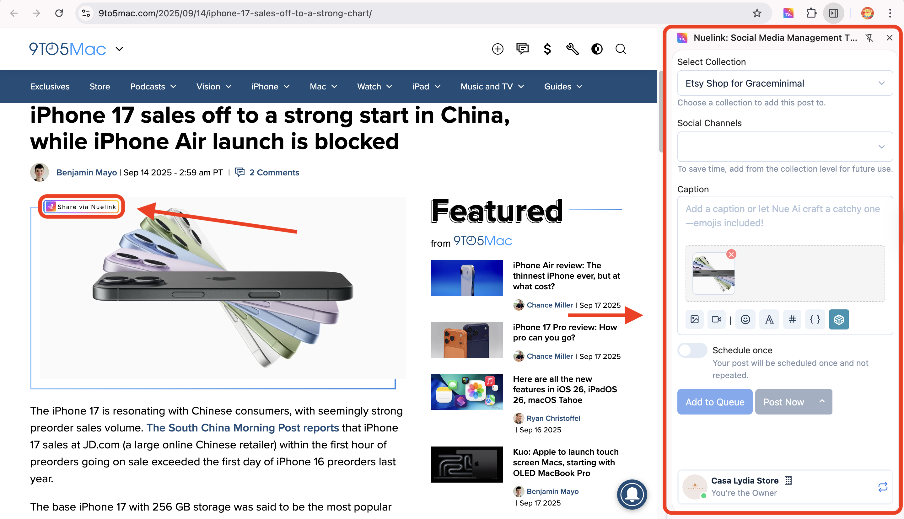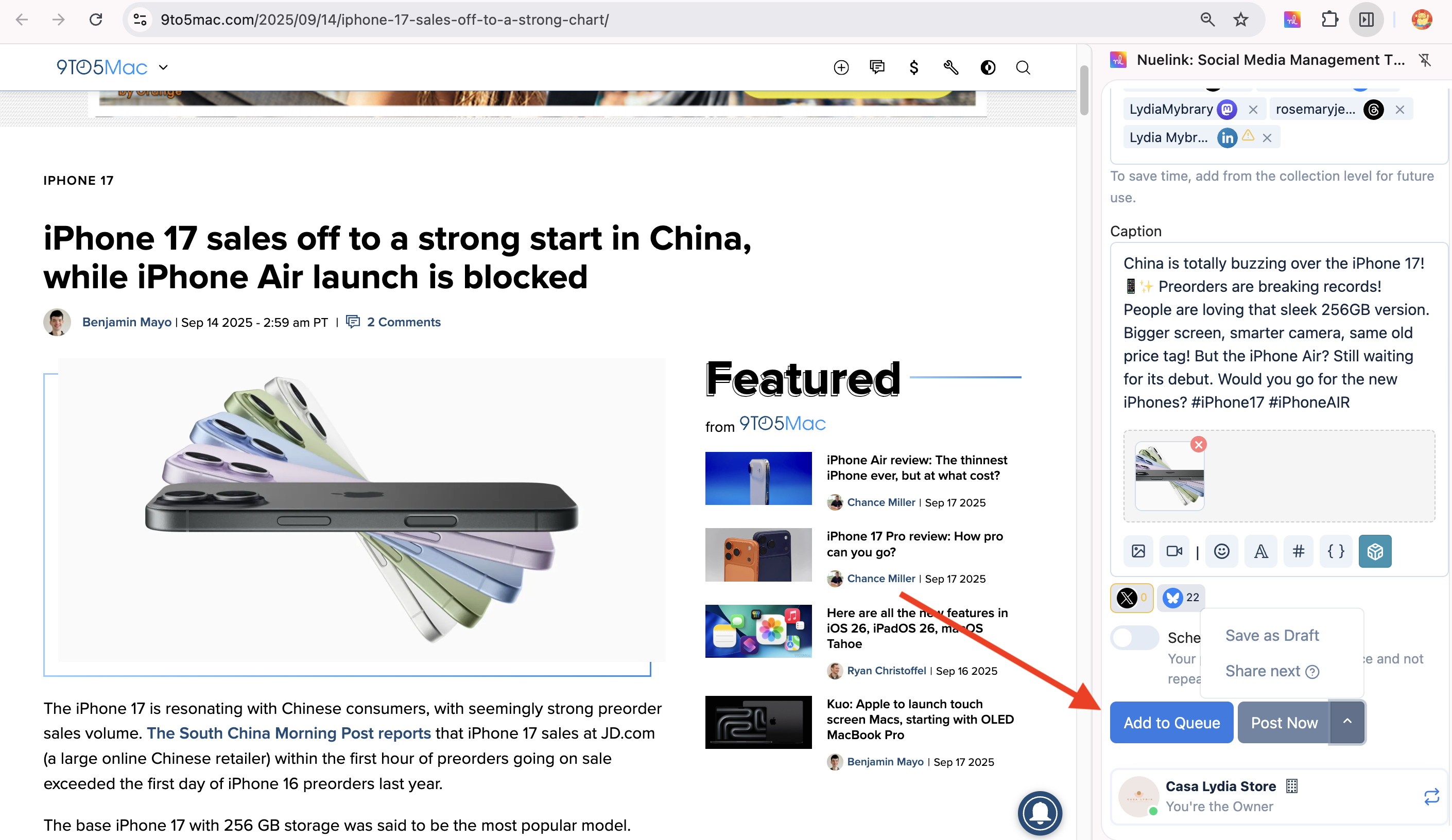 Using the Nuelink extension allows you to create and publish posts quickly without needing to open a new tab. You can directly share images.