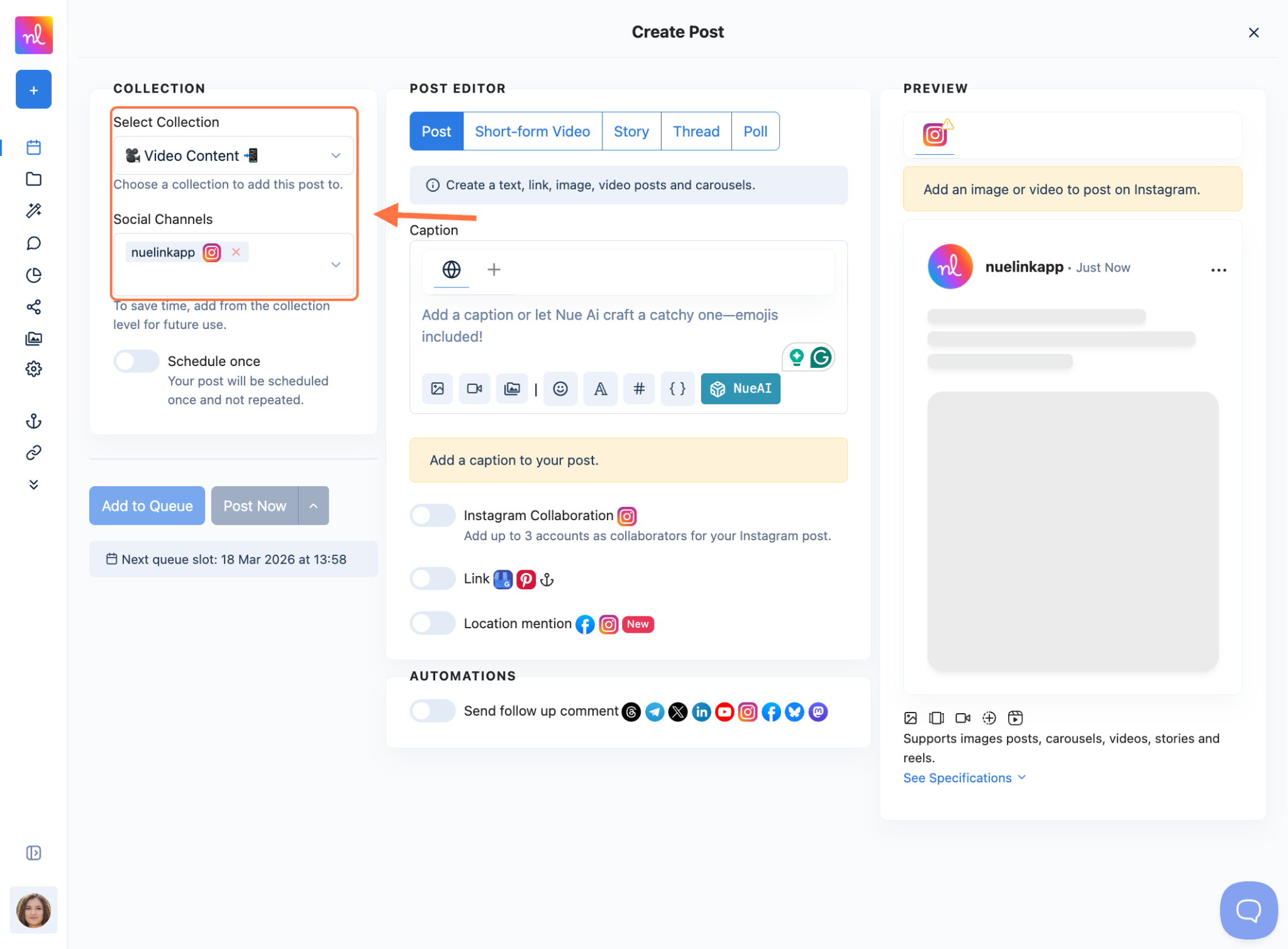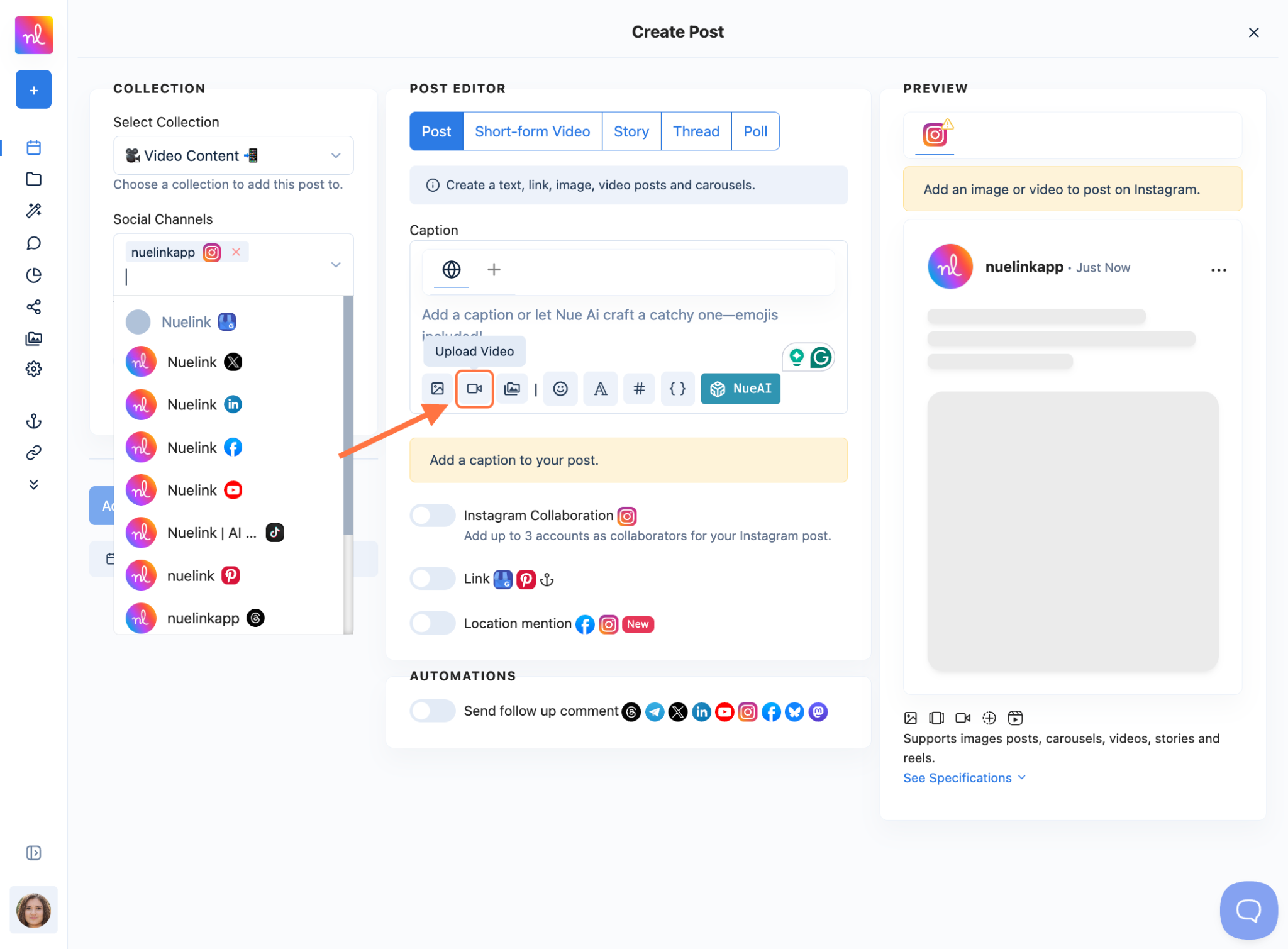 How to Schedule Instagram Trial Reels on Nuelink