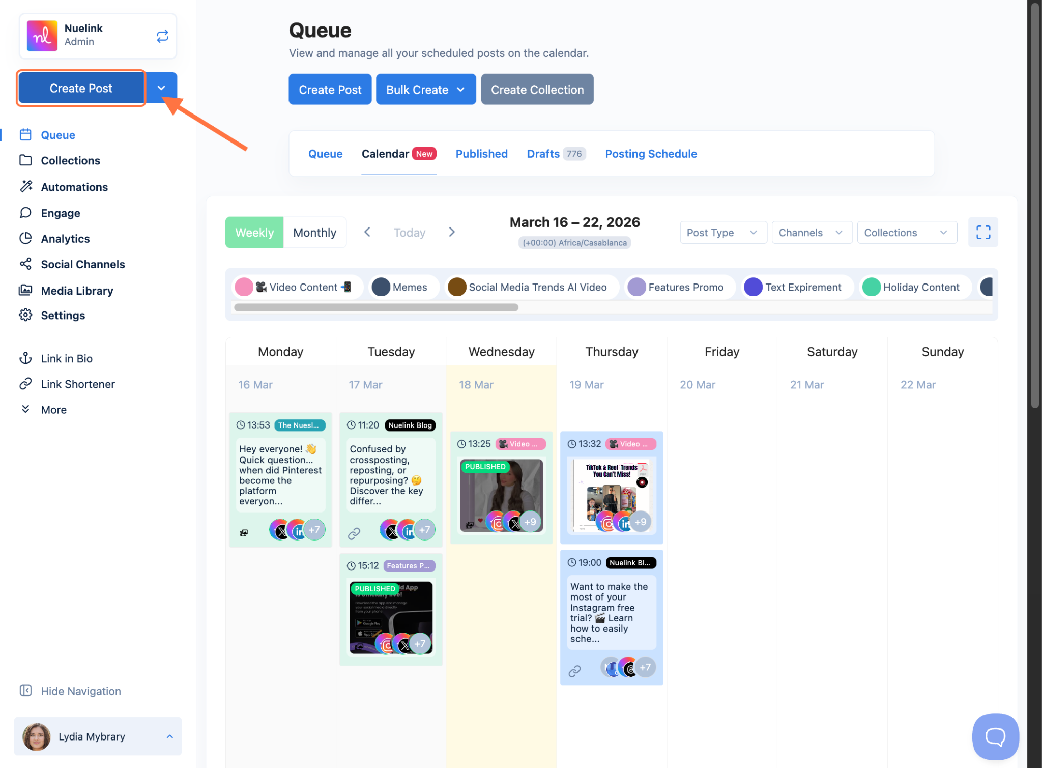 - Log in to your Nuelink account and create a new post.