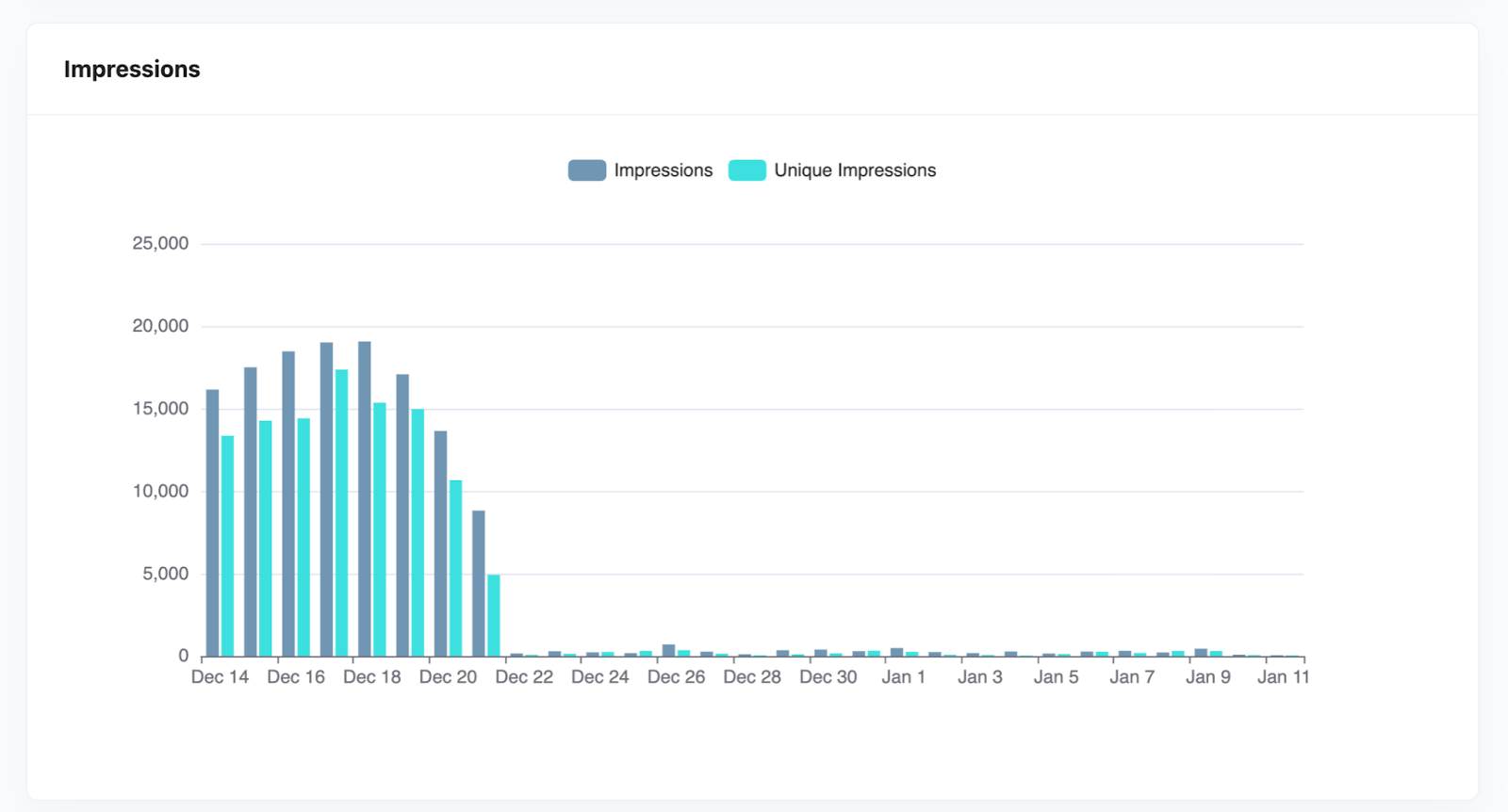 Impressions show how many times your content appeared on users' screens.