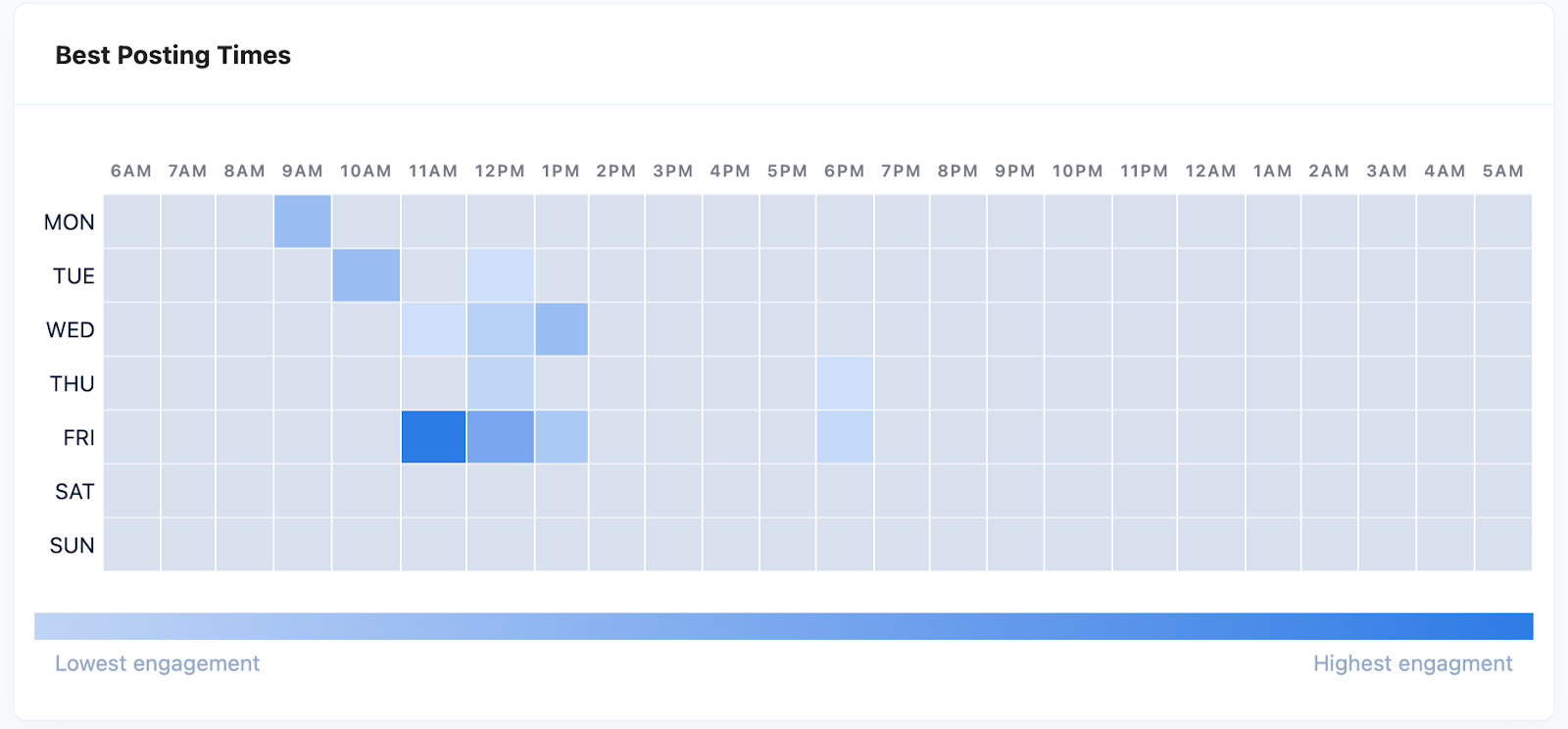 Nuelink suggests the best times to post based on your audience activity and engagement patterns.