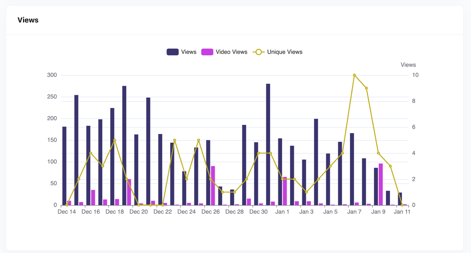 This can include total views across posts and video views, depending on the platform. Some platforms also provide unique views, which count each viewer only once, even if they watch the content multiple times.