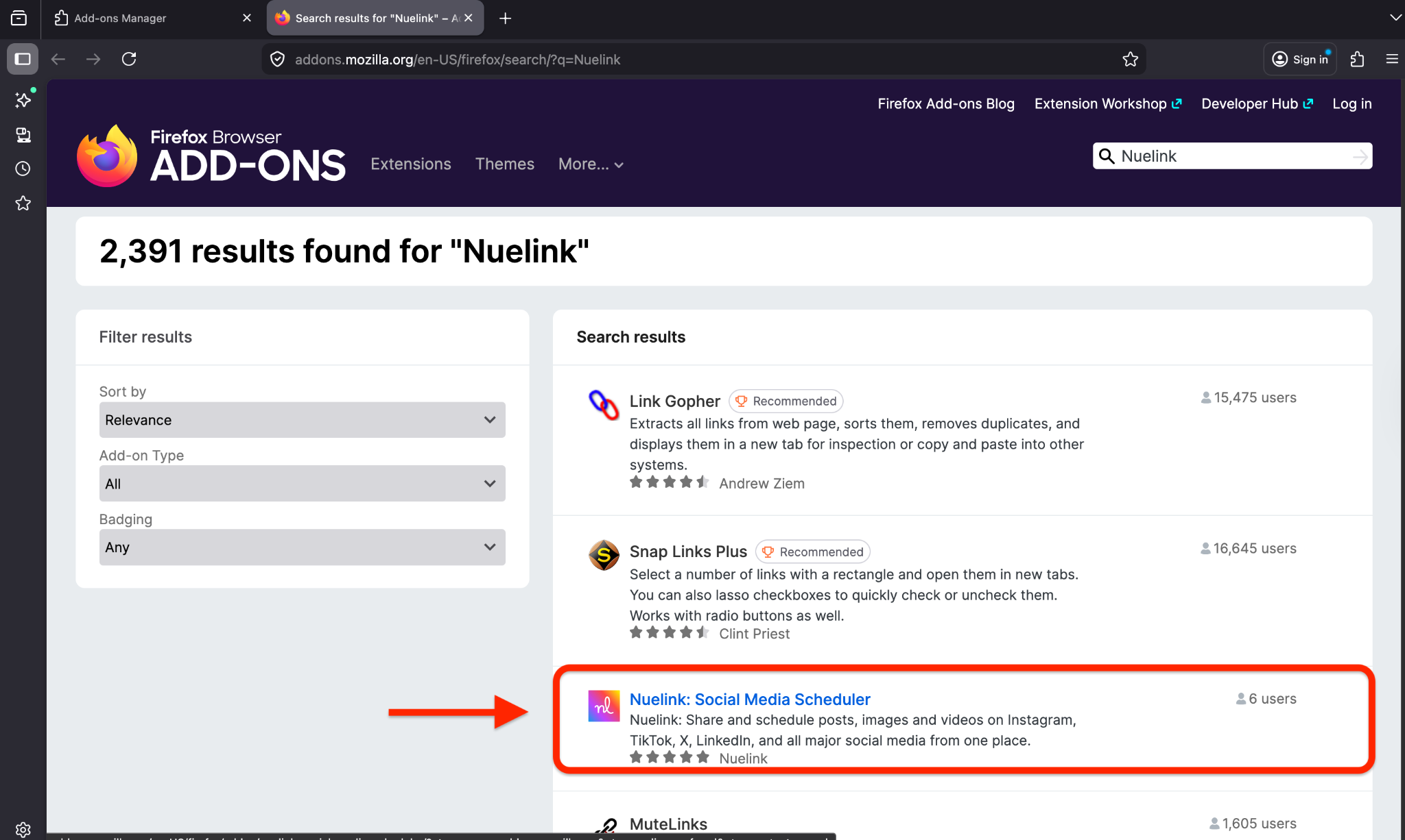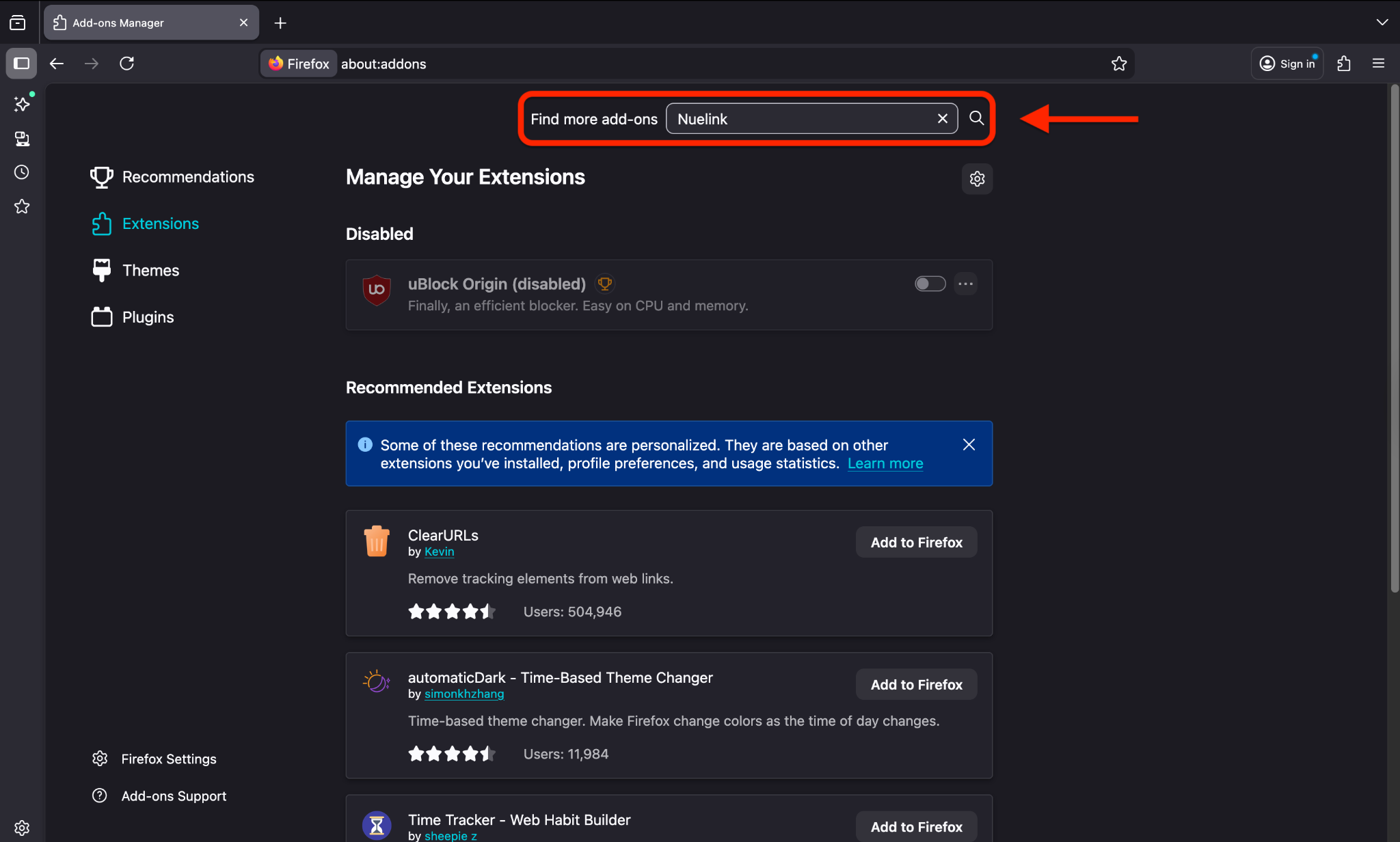 - To get the Nuelink Firefox extension, first go to the Firefox add-ons:
