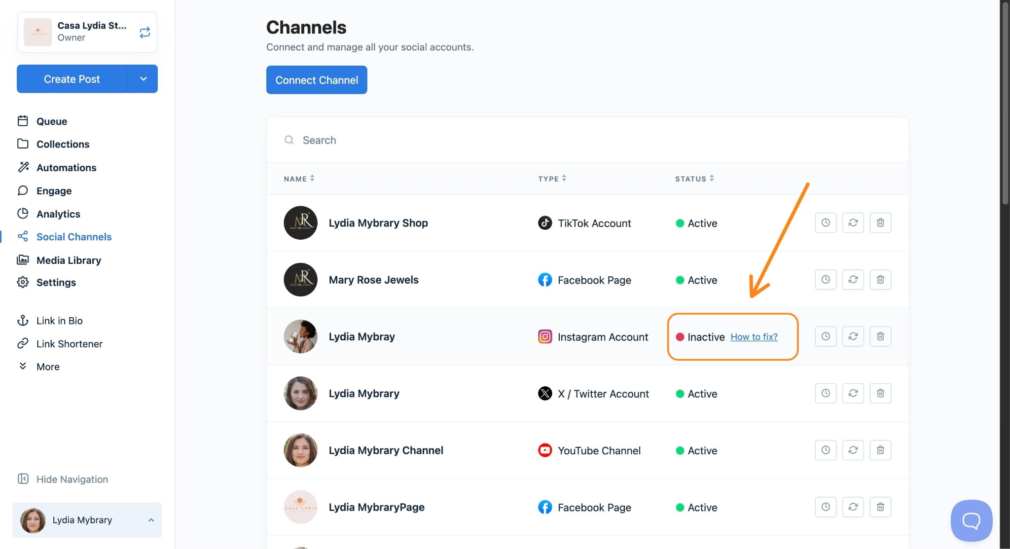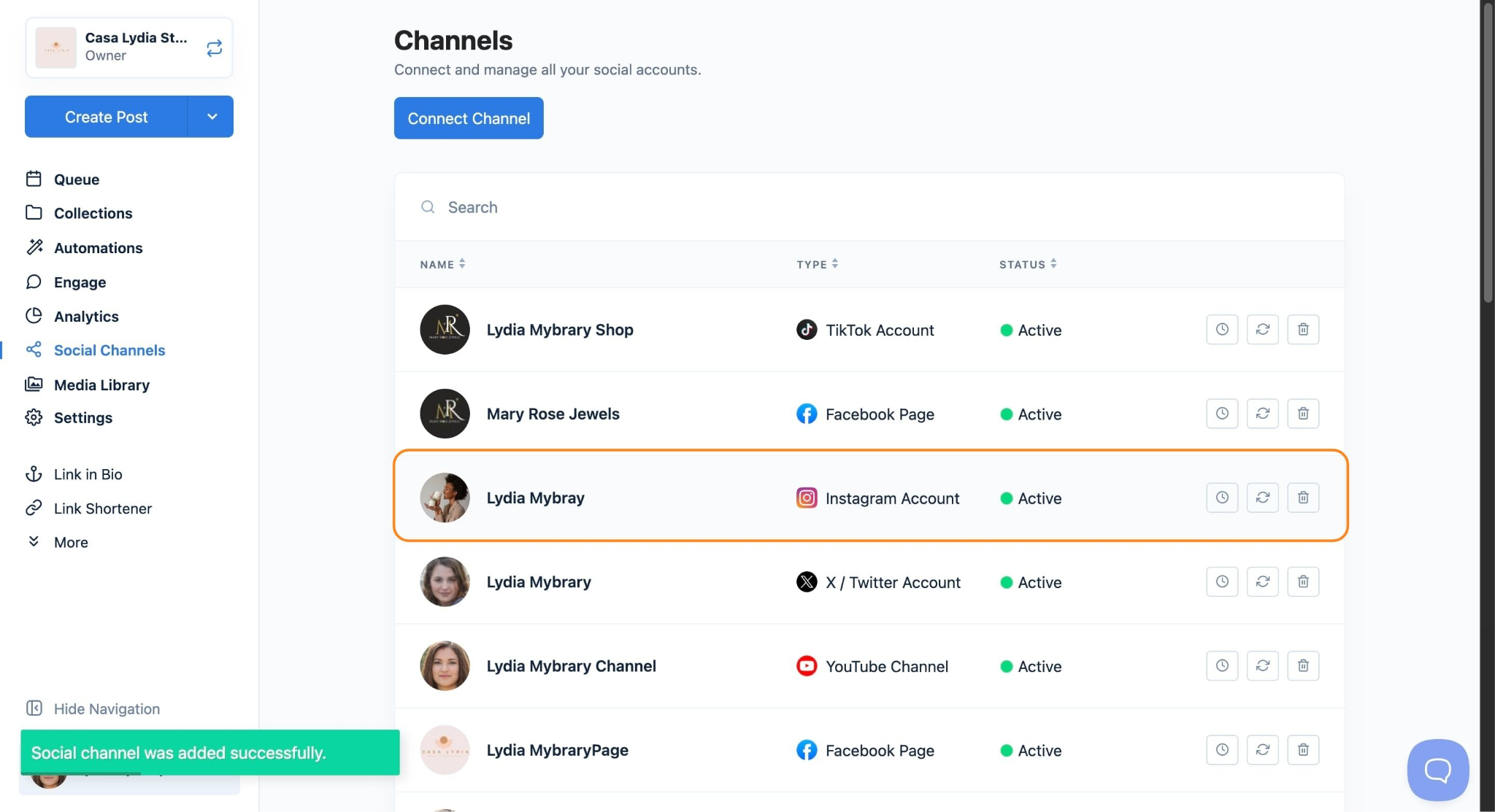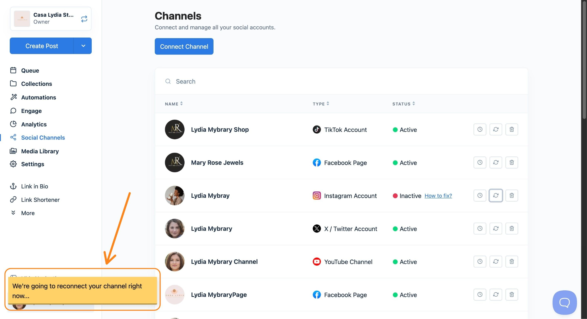 You're all set! Your channel is reconnected, and your scheduled posts will continue publishing as normal.