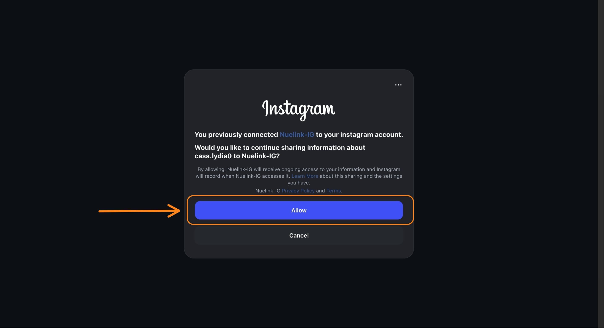 Try logging out of the social media platform in your browser, then log back in and reconnect again. Also, check that you are connecting to the correct account (the same one that was originally linked to Nuelink).