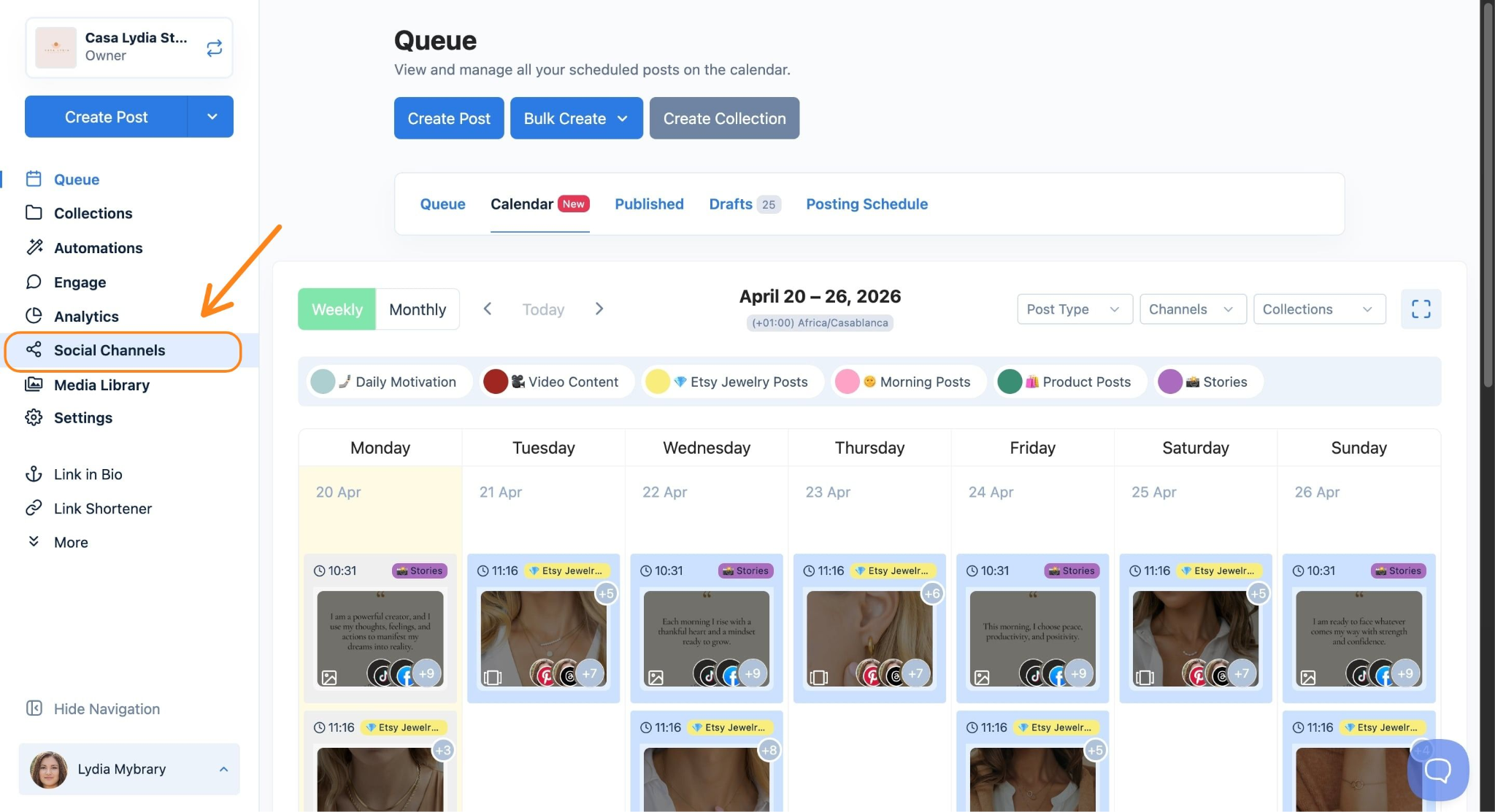 - Log in to your Nuelink account and click on Channels in the left sidebar.