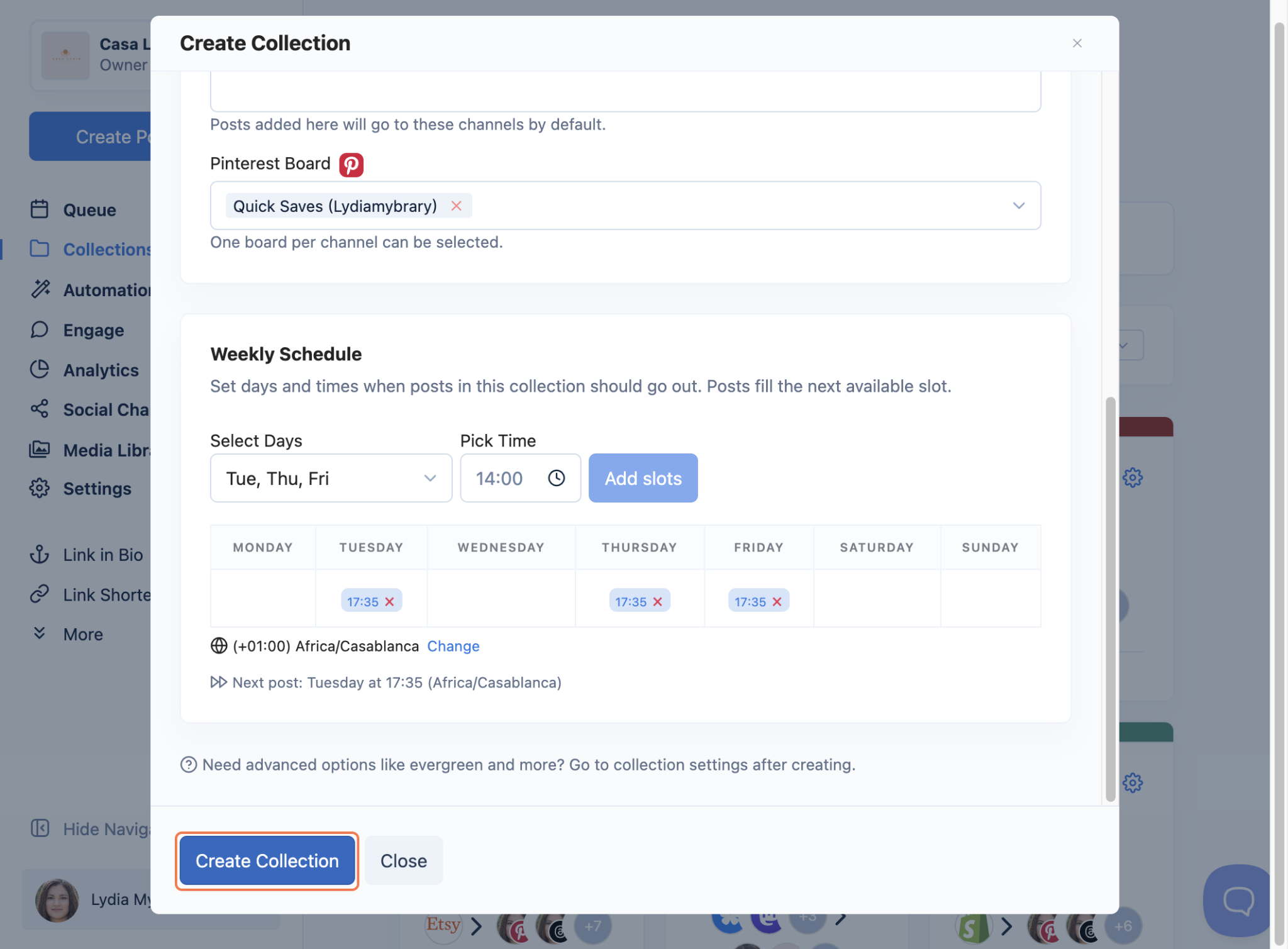 Need more settings? Options like Evergreen Queue, Posting Order, Pause Posting, Time Frame, and YouTube Playlists live in the collection's advanced settings. Learn more in our Advanced Collection Settings guide.